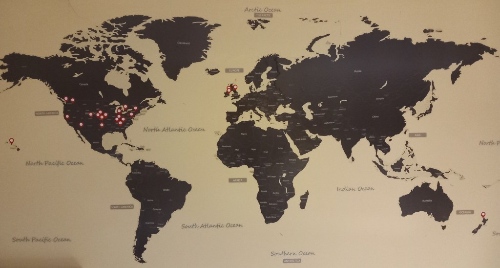 We’ve had lots of fun meeting friends from all across the world! If you’re listening and you’re not on our map, say hello! (We get very excited when we can add a new sticker to our wall!)